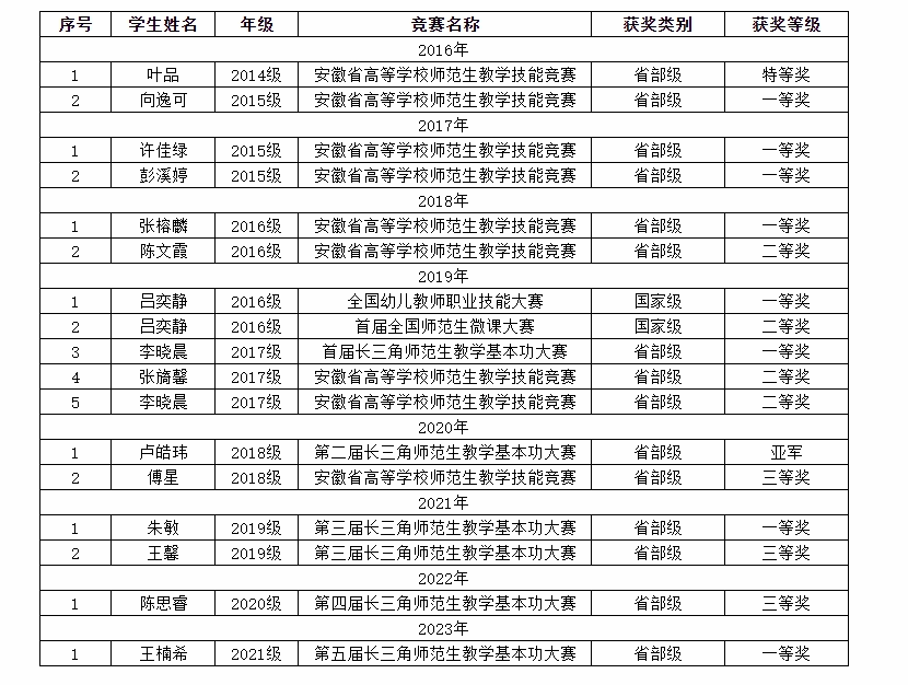 林珊珊  2017级安徽师范大学学前教育专业,2021年保送南京师范大学攻读研究生。