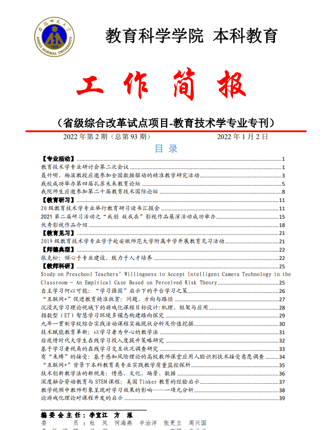 教育科学学院本科教育工作简报(第93期)教育技术学专业专刊