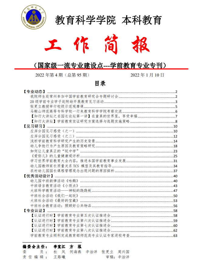 教育科学学院本科教育工作简报(第96期)学前教育专业专刊