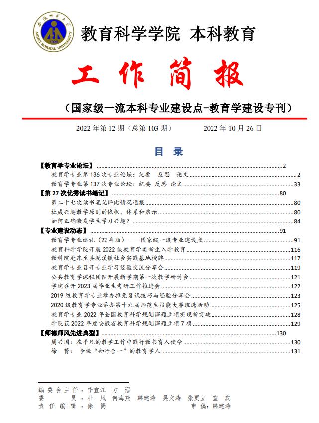 教育科学学院本科教育工作简报(第103期)教育学专业专刊