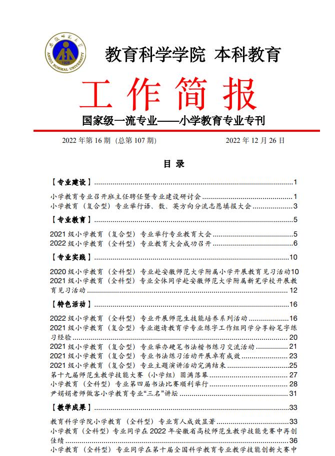 教育科学学院本科教育工作简报(第107期)小学教育专业专刊