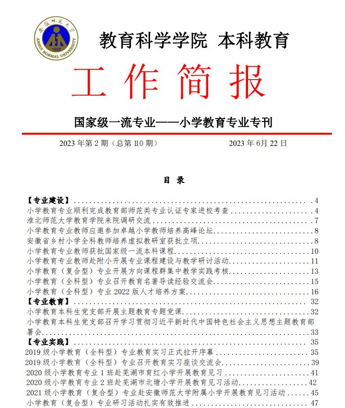 教育科学学院本科教育工作简报(第110期)小学教育专业专刊