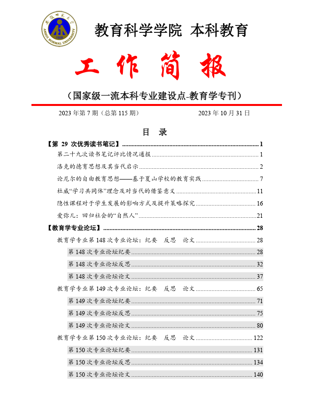教育科学学院本科教育工作简报(第115期)教育学专业专刊