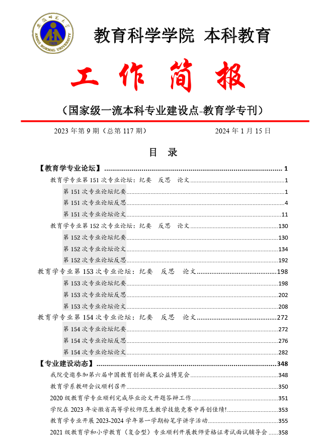 教育科学学院本科教育工作简报(第117期)教育学专业专刊