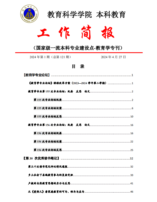 教育科学学院本科教育工作简报(第121期)教育学专业专刊