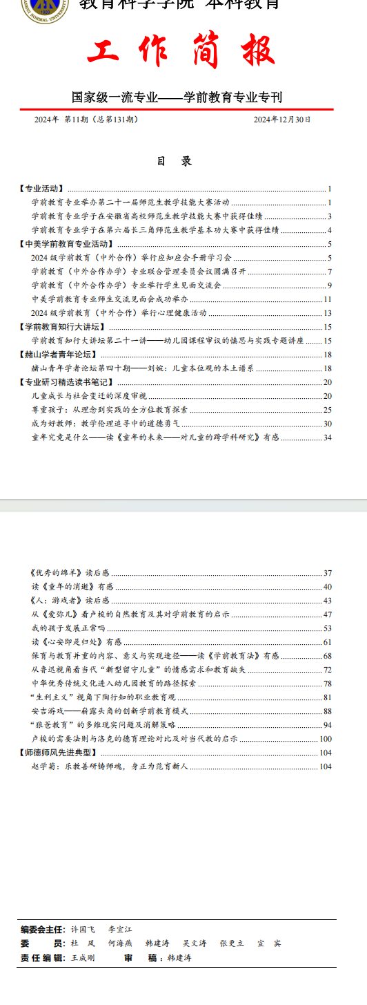 教育科学学院本科教育工作简报(第131期)学前教育专业专刊