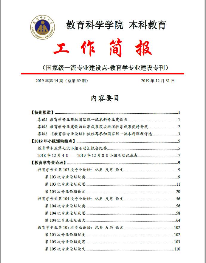 教育科学学院本科教育工作简报(第69期)教育学专刊