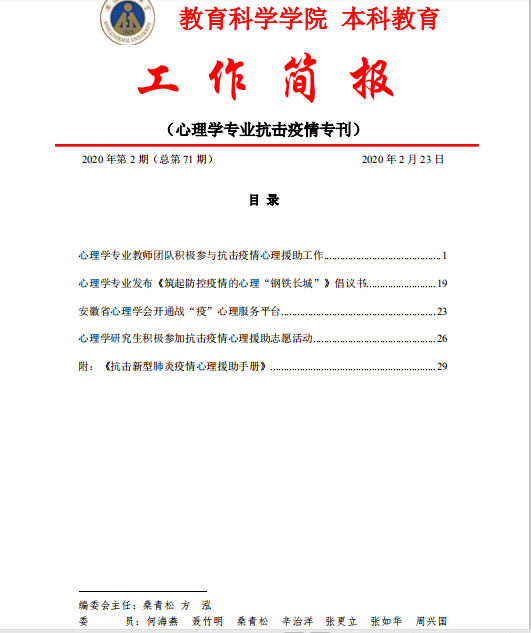 教育科学学院本科教育工作简报(第71期)心理学专业抗击疫情专刊