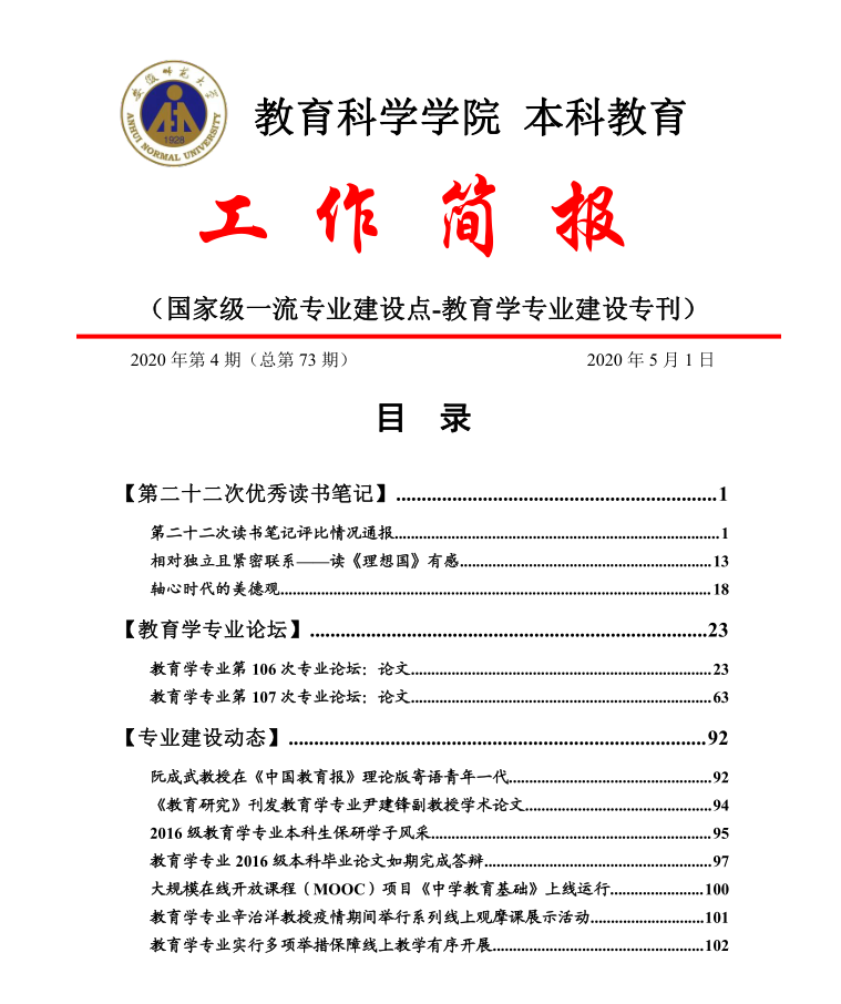教育科学学院本科教育工作简报(第73期)教育学专刊