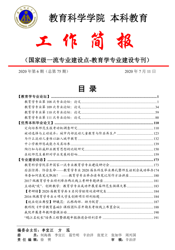 教育科学学院本科教育工作简报(第75期) 教育学专业建设专刊