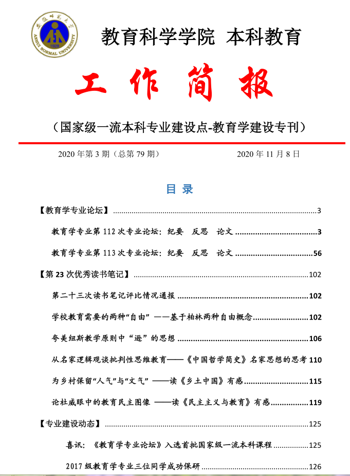教育科学学院本科教育工作简报(第79期) 教育学专业建设专刊