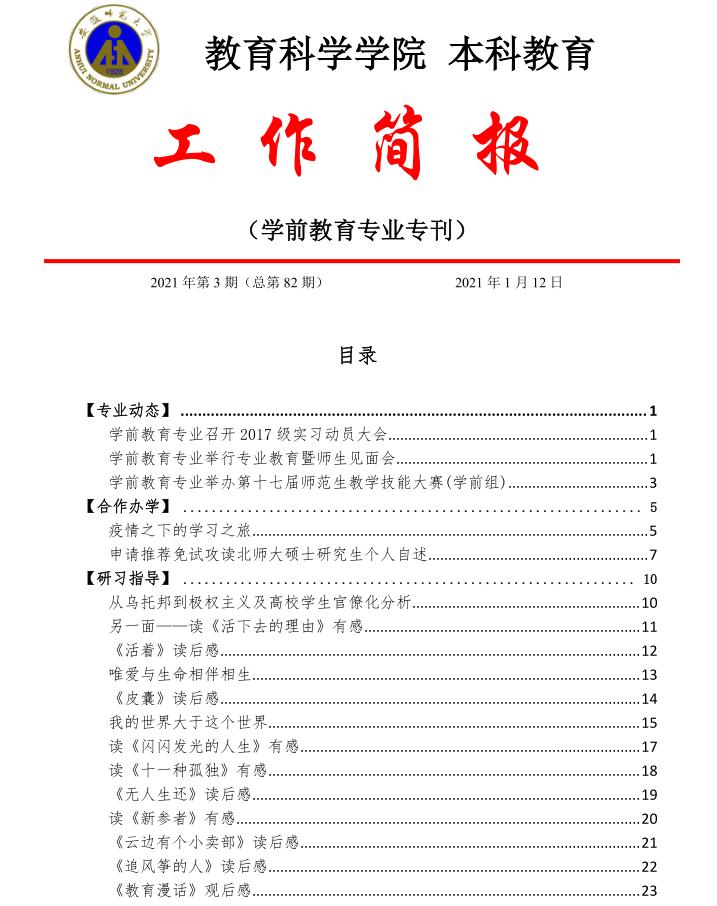 教育科学学院本科教育工作简报(第82期) 学前教育专业专刊