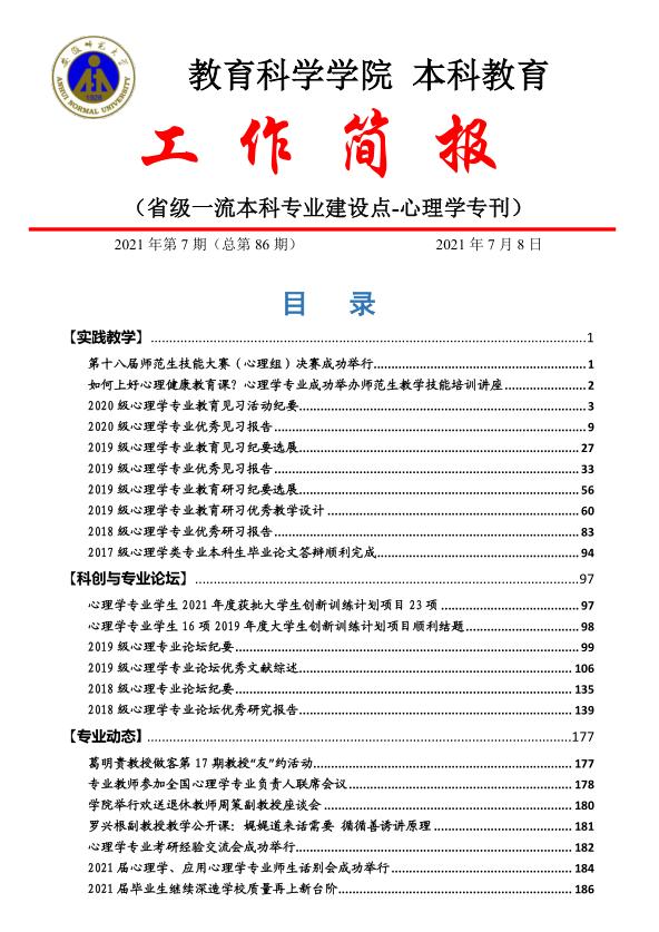 教育科学学院本科教育工作简报(第86期)心理学专刊