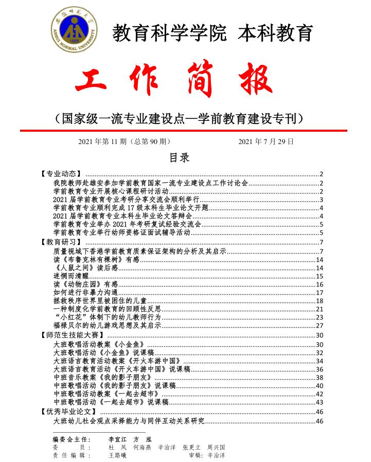 教育科学学院本科教育工作简报(第90期)学前教育专业专刊