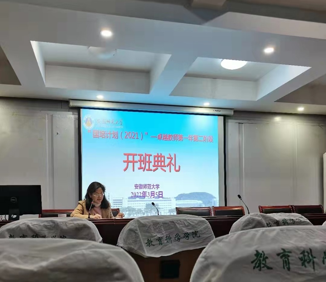 本网讯(学员 蔡兆莎)2022年3月5日上午,安徽金年会三楼报告厅隆重举行芜湖市“国培计划(2021) ”“卓越幼师培养”项目第一年度第二次集训开班典礼。出席会议的有班主任朱立新副教授,正高级教师余捷,以及来自无为市和湾沚区的12名参训学员,会议由班主任朱立新主持。