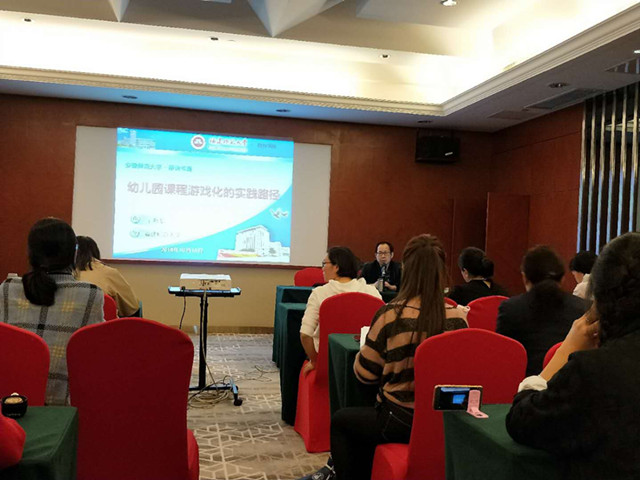 10月18日下午,福建师范大学丁海东教授在芜湖金鹰尚美酒店六楼D厅为园长们带来了题为“幼儿园游戏课程的实施路径”的专题讲座,丁教授主要从游戏作为教学实践的基本手段、游戏作为教学实践的基本内容、游戏作为一种精神的存在等三个方面对游戏在幼儿园教学活动中的融合与应用进行讲解和分析。他认为,游戏不仅仅是一种活动,更是一种精神。游戏之于教育,不仅具有手段价值,更有其本体的价值。游戏不仅仅是教学实施的手段,是教学的基本内容,更是贯穿教学全部实践的灵魂,是儿童的生命赖以存在的寓所,是早期教育教学的生命所在。三个小时的讲座过程中,丁教授旁征博引、讲解透彻入微、语言风趣幽默,同时又不乏强有力的逻辑性,引得园长们掌声不断,直言丁教授关系游戏的讲座又一次给了园长们新的启发。