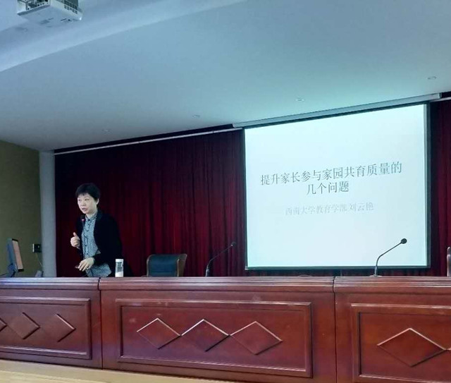 10月12日上午,西南大学刘云艳教授在安徽师范大学赭山校区图书馆报告厅为园长们带来了题为“提升家长参与家园共育质量的实践路径”的专题讲座,刘云艳教授围绕“家长参与是影响保教质量的重要因素、家长参与质量的考察指标、如何提高家长参与家园共育的质量”这三个问题谈起,将早期教育的重要性上升到国家的角度,获得园长们的高度认同,但同时指出早期教育的质量是早期教育者应该关心的重中之重,接着从家长参与的含义、家长参与的类型等分析当下家长参与存在的主要问题,并分析原因,以案例的形式提出切实可行的方法,园长们对刘云艳教授提出的解决方法纷纷表示赞同和认可,课下积极与刘教授讨论,讲座结束,但园长们向刘教授请教和学习的热情没有结束。