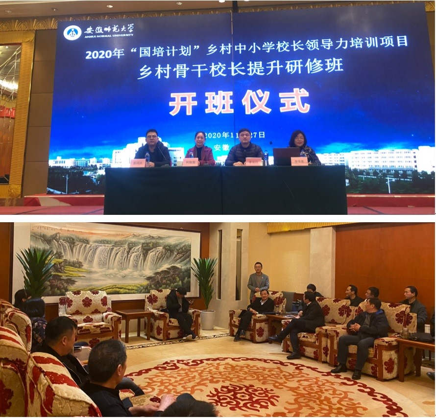 本次培训于2020年11月12日~21日和2020年11月26日~12月5日分两期完成,共有来自于安徽省肥西县、休宁县、蒙城县等全省15个县区的共428位中小学校长,在冬日的暖阳中来到安徽师范大学。在学院的精心安排下,一场简约却充满期待的开班典礼吹响课为期十天研学之旅的集结号。