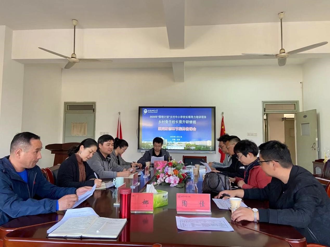11月11日下午,2020年“国培计划”乡村骨干校长提升研修班集体备课会在教科院308召开,项目首席专家、教科院院长李宜江教授,副院长何海燕,影子培训校校长和全体班主任参会。