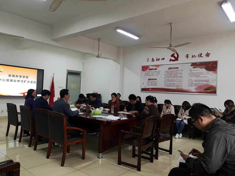本网讯(教科院 袁黎平)3月27日,教育科学学院召开中心组(扩大)学习会,学习中共中央《关于加强党的政治建设的意见》,传达全国全省重要会议精神。院党委书记方泓主持会议,学院党委委员、各支部书记参加会议。
