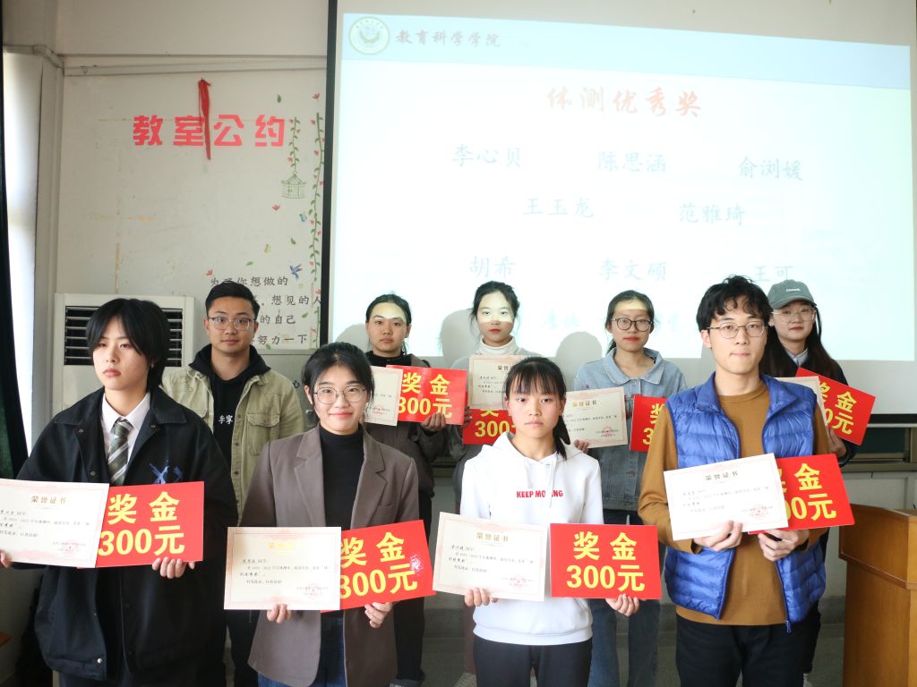 学院为提高学生体质健康水平,调动学生参与体育锻炼的积极性,出台教育科学学院体测奖励办法,并根据2021-2022第一学期的体测成绩,举办了首届“体测表彰大会”,对体测成绩优异以及有明显进步的学生进行了专门表彰。