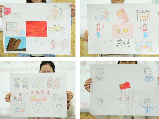 学院注重内容规划,做到理论学习有深度,自身体会有高度,互动分享有温度,总结交流有角度。邀请多位专家学者和优秀学子做报告,组织开展“重点解析”“要闻分享”“视频观摩”等活动,汇编学习资料、发送时政热闻、撰写学习心得,强化了自我管理意识,提升了自我学习能力。尤其值得一提的是党校创新总结汇报形式,开展“用画笔绘制党课,让担当长流心间”为主题的成果汇报活动,并邀请关工委老领导,老教师与大家话学习,谈感悟,坚定学员们的入党信念。