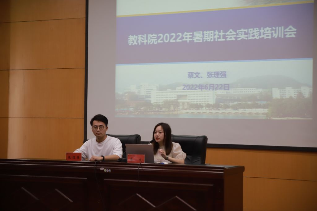 授旗仪式结束后,蔡文、张理强进行暑期社会实践专题培训,从安全问题、评选表彰以及文书写作三个方面展开培训交流,帮助同学们在实践中受教育、长才干、作贡献。
