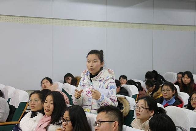 问答环节中,我院研究生同学们以流利的英文、真诚的态度向两位德国教授请教,从教育文化中的细枝末节到课程设置上的把控全局,从教师薪资的令人兴叹到早教领域的深井理论。在获得两位教授详细精准解答的同时,也将报告的气氛推向高潮。
