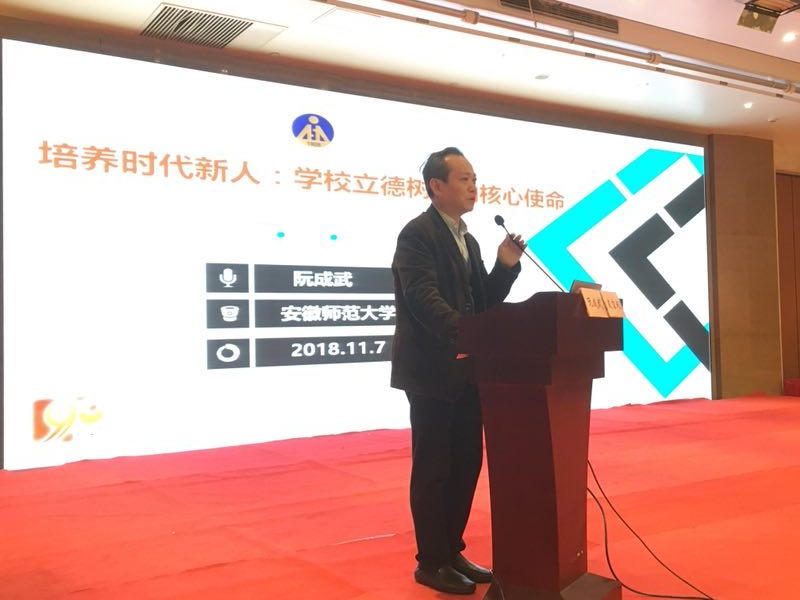 本网讯(教科院)11月7-8日,教育部中学校长培训中心、安徽省教育厅在合肥主办第8期长三角中小学名校长高级研究班高峰论坛暨结业典礼,经过严格选拔和系统培训,来自上海、浙江、江苏、安徽四省市中小学和教师进修学校的120名校长,参加了此次高级研究班的高峰论坛及结业典礼。主办单位教育部中学校长培训中心、安徽省教育厅分别从华东师范大学、浙江大学、安徽师范大学、江苏省教育行政干部培训中心遴选四位专家做观点报告。我院阮成武教授应邀在论坛上做了题为《培养时代新人:学校立德树人的核心使命》的学术报告。他围绕党的十九大报告提出要培养担当民族复兴大任的时代新人这一重大课题,结合习近平总书记在全国教育大会讲话精神,系统阐述了新时代需要培养时代新人、时代新人的目标与内涵,分析了从培养“四有新人”到培养“时代新人”的历史背景和时代要求,并结合当前基础教育改革实际,提出学校教育致力于培养时代新人的路径与策略。来自四省市的校长们对报告反响热烈,并在接下来的分论坛上给以了广泛回应。我院阮成武教授、李宜江教授还作为点评专家,和四省市的其他专家分别对分论坛的校长们主题发言做了点评。