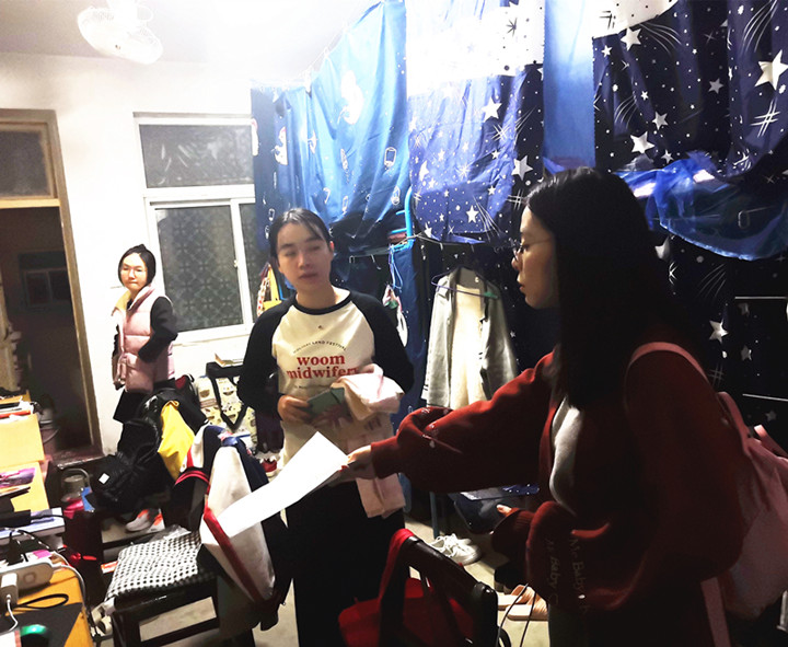 此次查寝主要检查我院研一学生宿舍是否存在违规用电及使用大功率电器等危险行为,同时进行秋季安全知识宣传。检查过程中,大家秉持着严谨、认真的态度,对寝室卫生情况以及大功率电器的使用情况一一进行检查。叶老师与研会的工作人员都非常耐心地提醒同学们务必保证寝室用电安全,杜绝使用违规电器并注意保持寝室空气流通。此次查寝结果显示,绝大部分寝室都能严格按照学院相关规定,做好寝室安全防范工作,大部分均能做到地面整洁,桌面物品摆放整齐,有些寝室内还摆放了绿色植物,贴上了色调柔和的墙纸,宿舍的氛围显得温馨而又舒适。