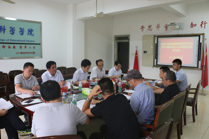 会上,首先由聂竹明副院长介绍了2018版教育技术专业人才培养方案修订的背景——专业归属调整,即教育技术专业原属于师范类(理科),授予理学学士学位,现依据《教育学类教学质量国家标准》修改为教育学二级学科,归属教育学类,授予教育学学士学位。接下来,聂竹明副院长说明了本次人才培养方案修订的基本原则,那就是在专业归属发生变化和大教育类招生的背景之下,转换人才培养思路,突出专业特色,强化专业优势。
