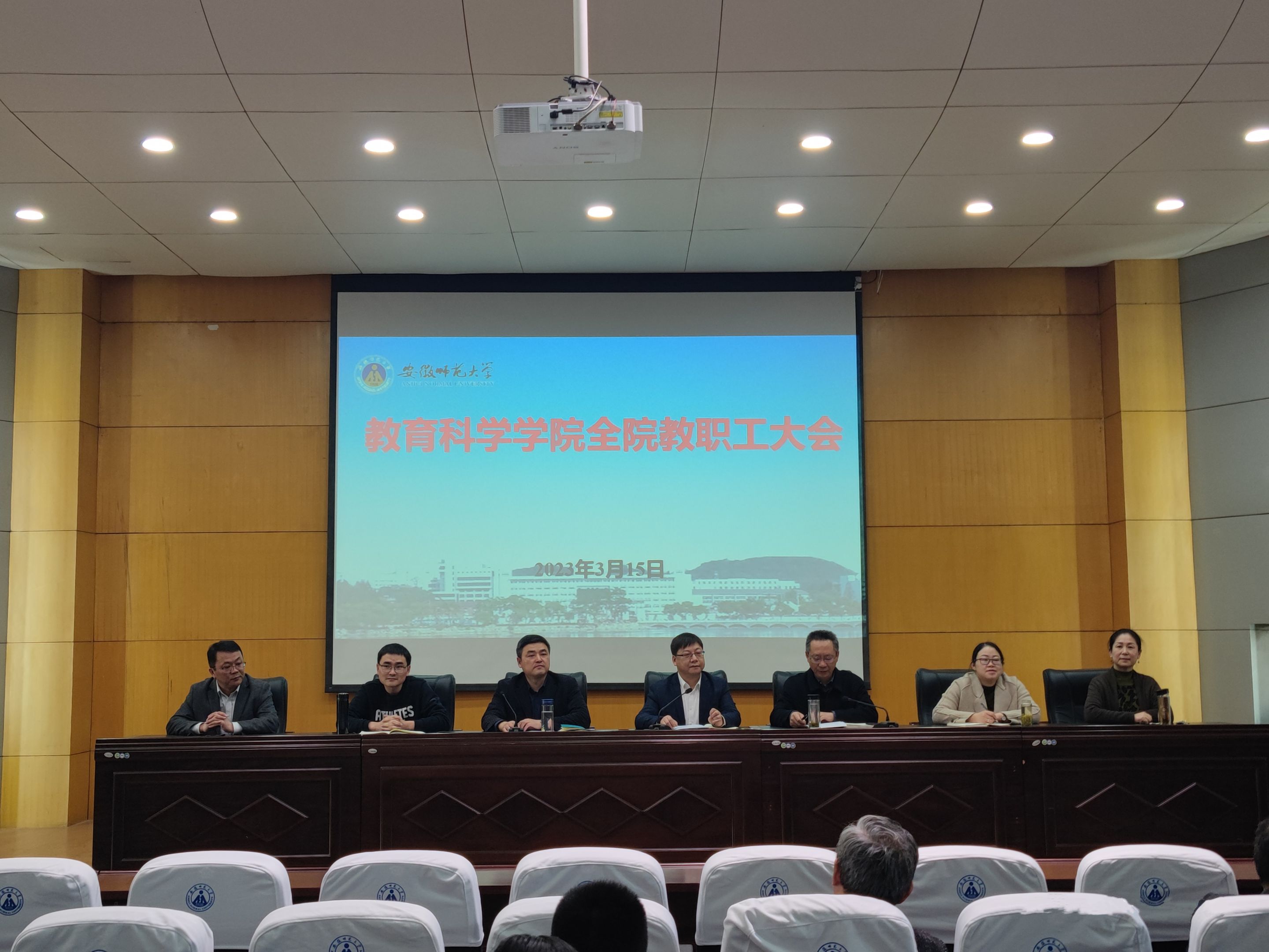 3月15 日下午,教育科学学院召开教职工理论学习大会,部署党委工作。会议由院长李宜江主持,全院教职工参加会议。