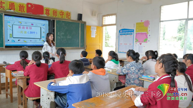 志愿者老师在大班进行英语音标教学。中国青年网通讯员 房聪摄