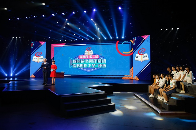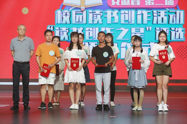 8月29日下午三点,10位来自省内高校的佼佼者在安徽电视台进行本届活动的最高奖项——“读书创作活动之星”的桂冠争夺。十位选手各展风采,分别在“原创作品演绎”、“知识竞答”和“我的读书(创作)故事”三大环节进行比拼。“原创作品演绎”环节主要由选手自由的陈述自己的获奖作品,并根据评委的打分决定竞答的组合;选手在第二环节两两比拼,考验各自的知识储备及现场反应能力,其中胜者进入第三环节;“我的读书(创作)故事”是选手个人的经验分享,展现其读书创作的心路历程。刘晓旭同学准备充分,演绎表现得体、自如,不但很好的诠释了原创作品中优美的文字,还体现了当代人作为时代栋梁的奋斗与追求,给现场评委和观众留下了深刻印象。知识竞答环节,刘晓旭沉着冷静的答对全部三题,展现了我校学子扎实的文学功底和较高的文学素养。