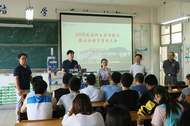 本网讯(教科院 左孟杰)近日,教育科学学院在田楼8101教室召开了2019届毕业生考研慰问暨安全教育大会。院党委书记方泓、院长桑青松、党委副书记张如华、副院长辛治洋、毕业班辅导员莫大贡老师及2019届100多位在校备考学子参加了此次大会。会议由张如华主持。