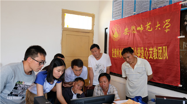 本网讯(教科院 叶方舟 孙岩松)信息化作为实现教育均衡常态化发展的一种有效媒介,为贫困地区教育扶贫提供了目标、方向与环境渲染。贫困地区教师应适应信息化发展,提升自身教育技术能力,开展积极有效的教育教学。2018年7月10日,我院“赴贵州水城县九归小学爱心支教团队”受九归小学校长杨秀祥邀请为九归小学全体教师开展教师信息技术培训。