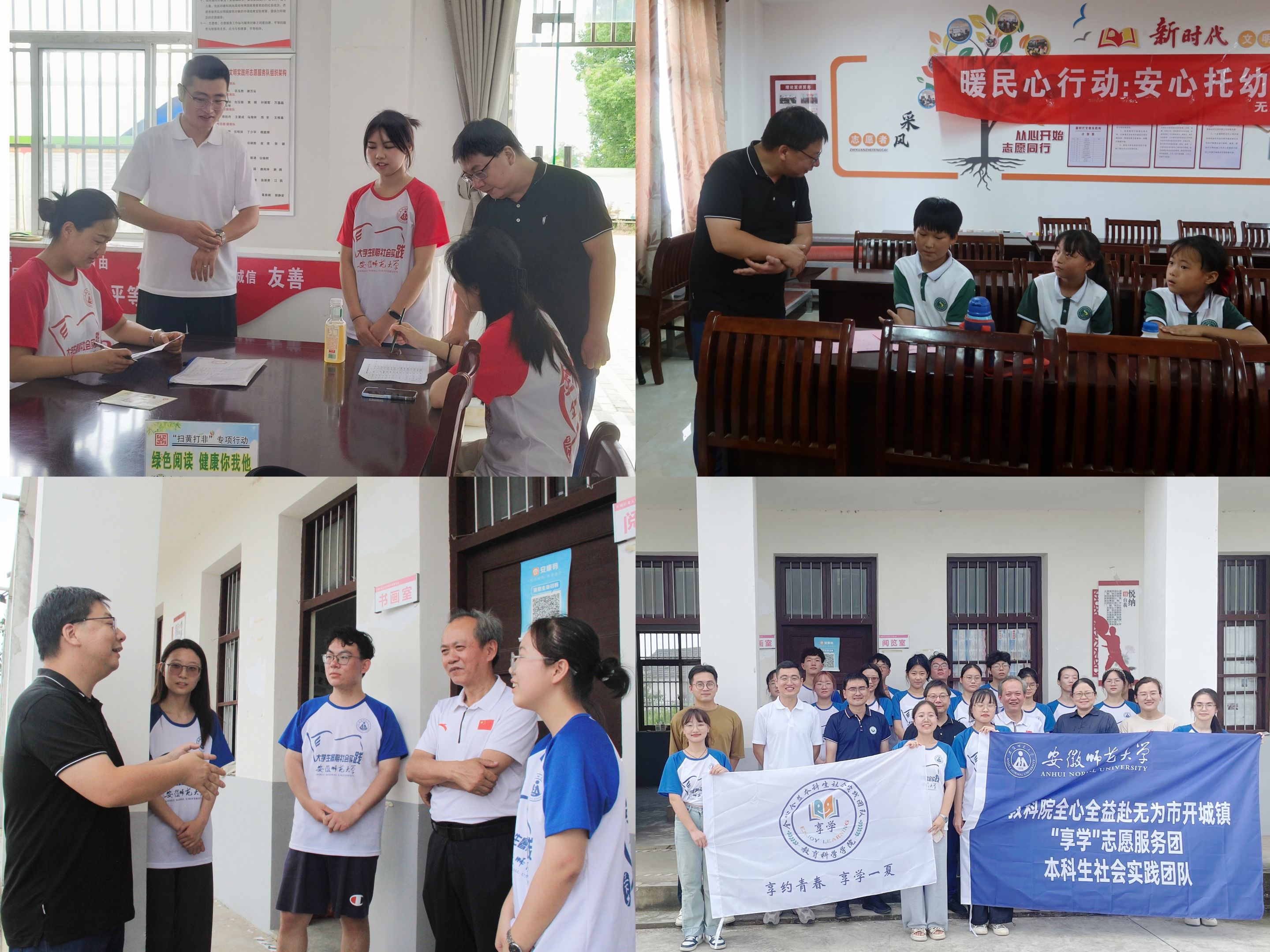 座谈会前后,学院领导老师依次前往无为市福渡镇、十里墩镇、开城镇慰问四支暑期社会实践团队。福渡中心学校校长许先友,福渡中心学校第一党支部书记罗志平,新河小学校长张弢,福渡中心小学副校长方咸海,十里墩镇党委副书记、镇长张文红,十里墩镇宣传、统战委员江林雄等一起走访慰问。