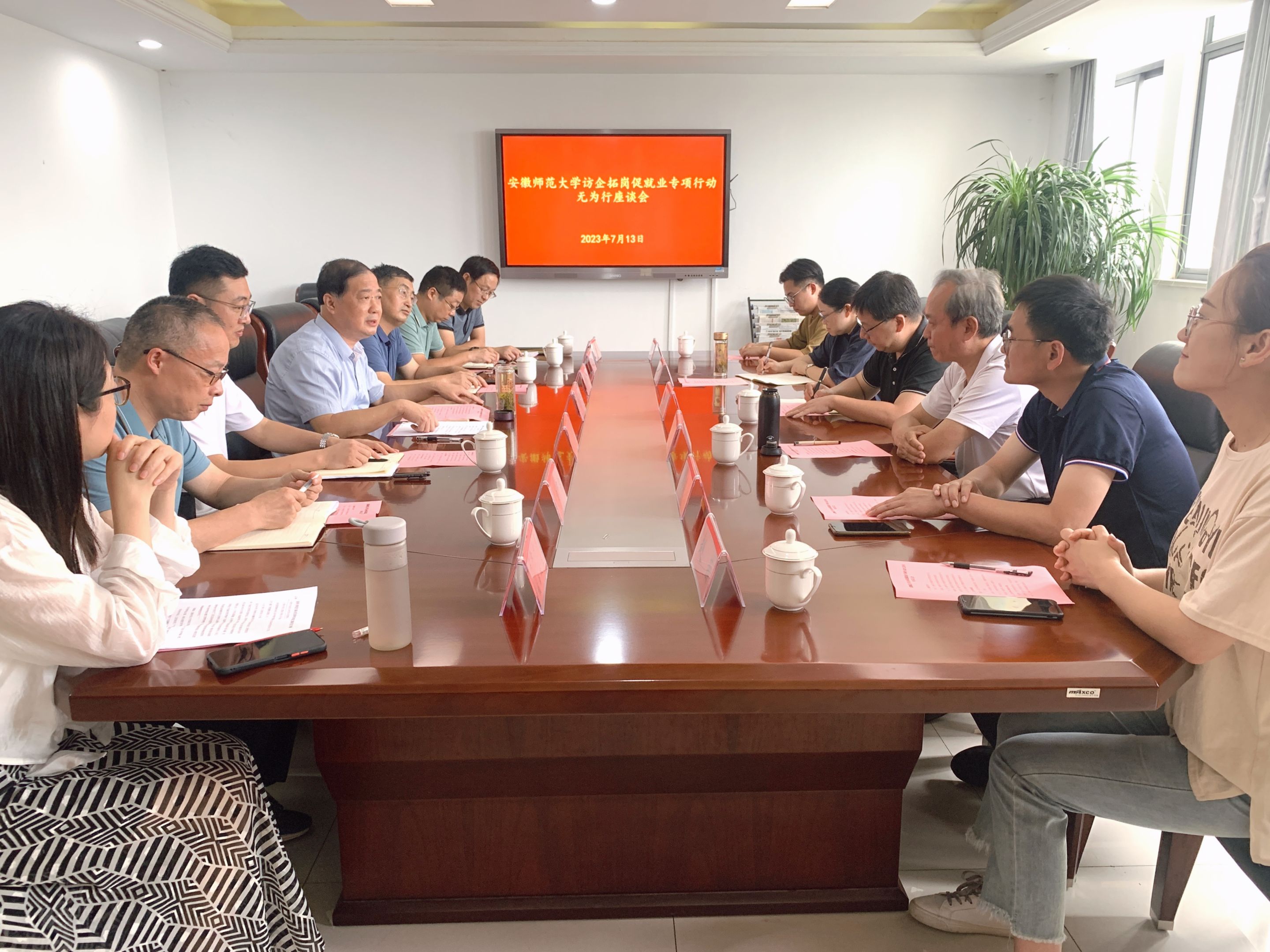 713日上午,教育科学学院党委书记许国飞教授阮成武、党委副书记杜凤副院长韩建涛、团委书记张理强、辅导员赵茜等一行前往无为市教育局开展“访企拓岗促就业”专项行动并看望慰问在无为开展暑期社会实践的四支团队无为市教育局局长魏宝中副局长刘修宽、学院教师、挂职副局长肖龙,人事股长程长安,以及无为中学、无为三中、无为实验小学城南校区负责人参会,座谈会由魏宝中主持
