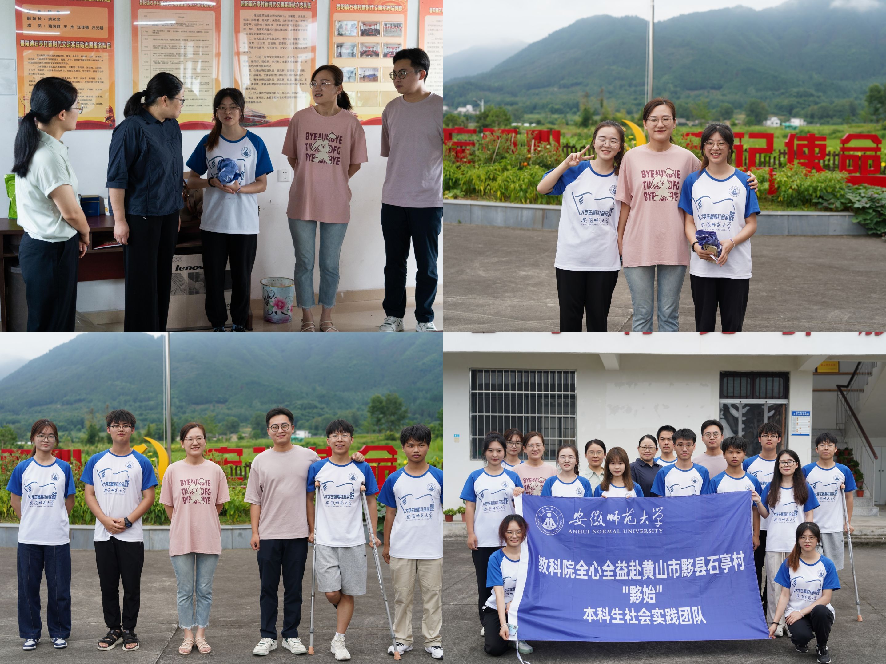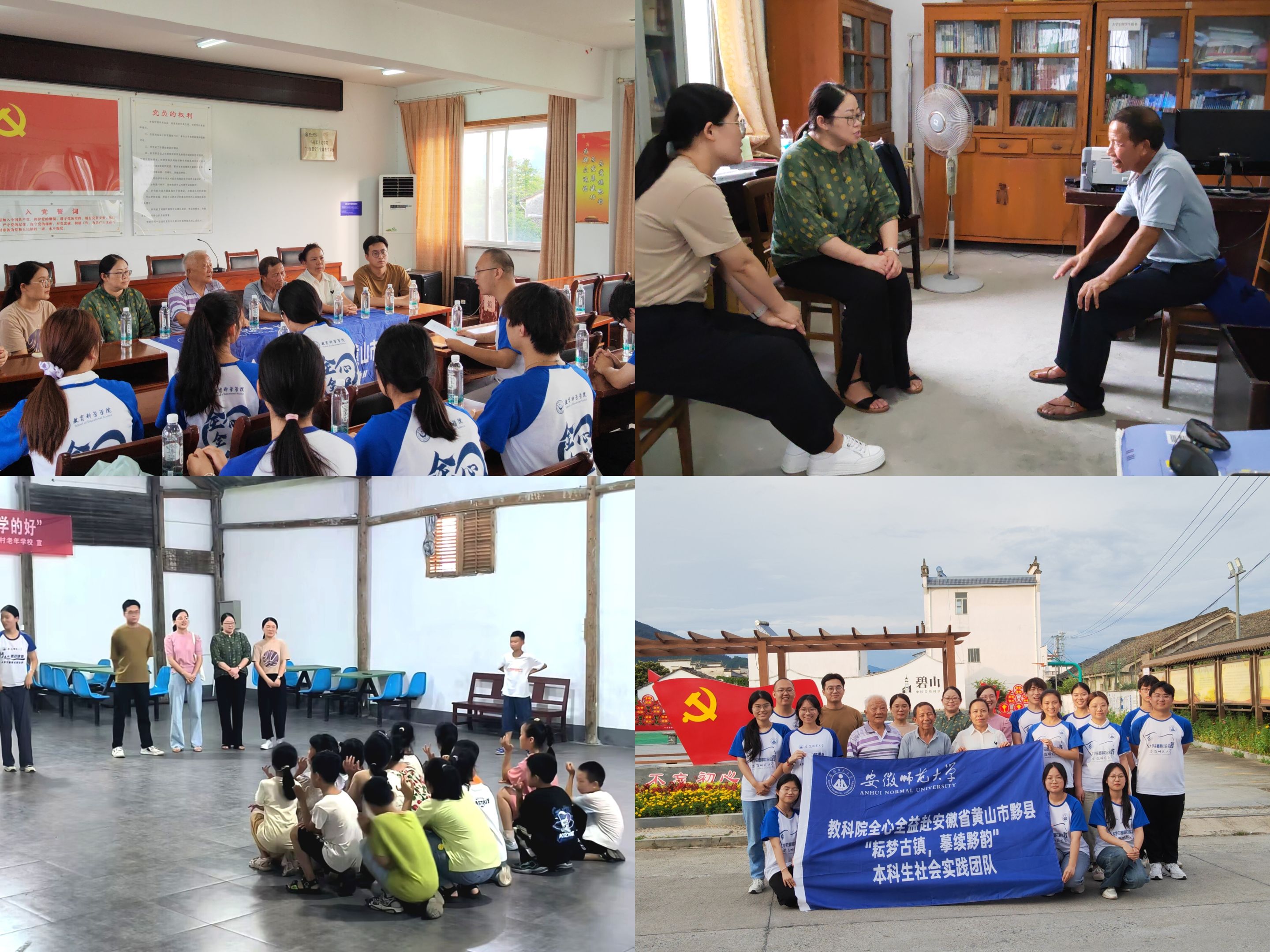 7月18日-7月19日,教育科学学院党委副书记杜凤、暑期社会实践思政指导教师丁建文、团委书记张理强、辅导员赵茜等一行前往黄山市黟县与古黄村共建大学生社会实践基地,并看望慰问在黟县开展暑期社会实践的四支团队。