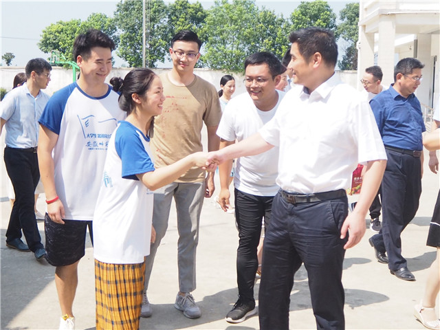 7月24日上午,和县县委书记戴瑞在副县长王竹梅、历阳镇党委书记杨福好、县妇联主席林敏、团县委书记薛昆的陪同下来到安徽金年会“全心全益”赴和县支教团队龙华辅导点,看望大学生志愿者,了解支教工作状况。