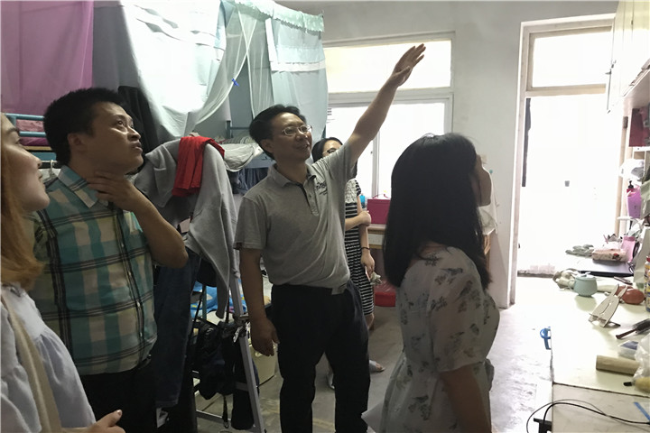 本网讯(文/殷明敏 图/房聪)为提前做好暑期留校学生宿舍安置和安全教育工作,7月5日,教育科学学院党委书记方泓、副院长聂竹明、研究生管理办公室教务员叶方舟带领院研会成员针对研究生公寓展开了一次全面走访活动。