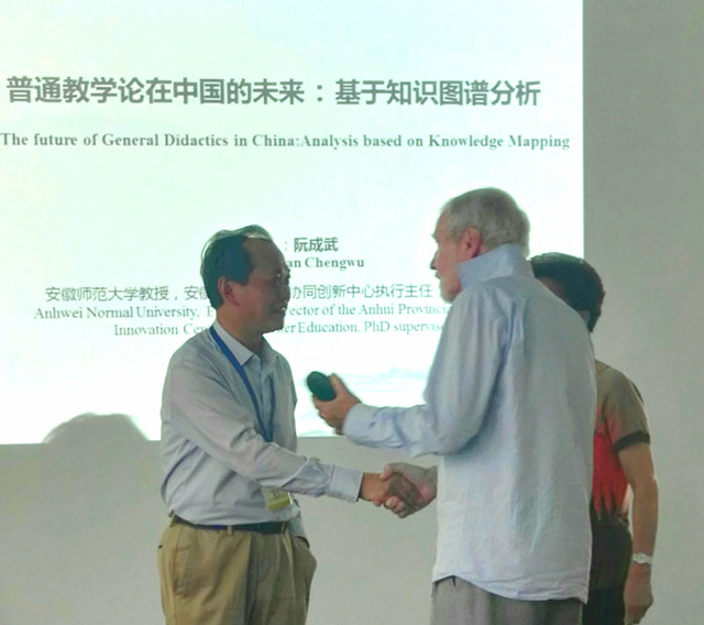 对话交流总结环节,对话发起人和组织者共同决定“第五届中德普通教学论对话”将由安徽师范大学承办。我院周兴国教授、阮成武教授、叶旭萍博士等共同主持普通教学论中-德合作的未来展望论坛。周兴国教授向各国与会者介绍安徽师范大学并发出邀请,欢迎学者们20199月来安徽师范大学参加“第五届中德普通教学论对话”。阮成武教授用自己的国画作品与对话发起人和德方专家进行了文化交流,给此次学术对话增添了中国元素。对话结束后,华东师范大学、奥登堡大学、基尔大学和安徽师范大学的专家召开闭门会议,就第五届中德普通教学论对话的议题、会议的筹备以及会议安排等进行磋商,并确定第五届中德普通教学论对话主题为“通过实证研究提升课堂教学质量”。