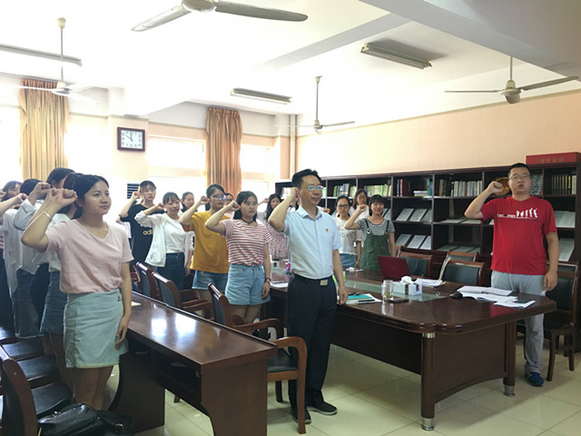最后,在庄严的党旗之下,所有与会的党员们进行了入党宣誓,再次重温入党誓词,勉励大家铭记党员身份,增强党性修养,牢记宗旨使命,做文明离校的表率。