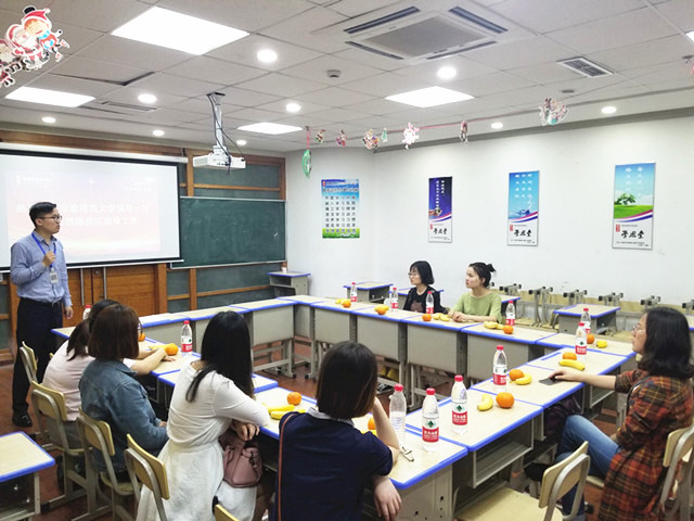 上午九时许,老师与同学们顺利抵达南京七田真国际早教中心,在中心负责人荣蓉老师的引导下,大家参观了中心的教学设施,并有幸观摩了“一对一”授课。期间,张如华书记与荣蓉老师针对应届毕业生的专业要求、工作环境、发展前景等问题进行了深入细致的交流,各位学生在观摩之余也针对孩子的培养,家长的陪伴以及教育的方式等问题向中心老师进行了询问。在随后的考察过程中,部分学生现场投递了简历并进行了面试,得到了中心招聘主管的认可与肯定。