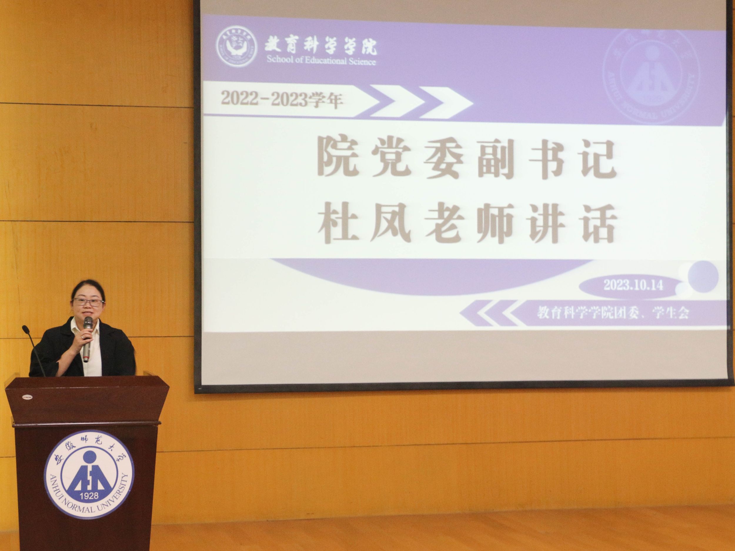 2023年10月14日下午,教育科学学院于田家炳教育书院3楼报告厅开展“教育科学学院优秀班集体”评选活动。院党委副书记杜凤、院团委书记付银行、院团委老师张理强、2021级辅导员赵茜、2022级辅导员程雅楠、2023级辅导员金凤仙、刘玉瑾以及各班汇报人及学生代表参加。
