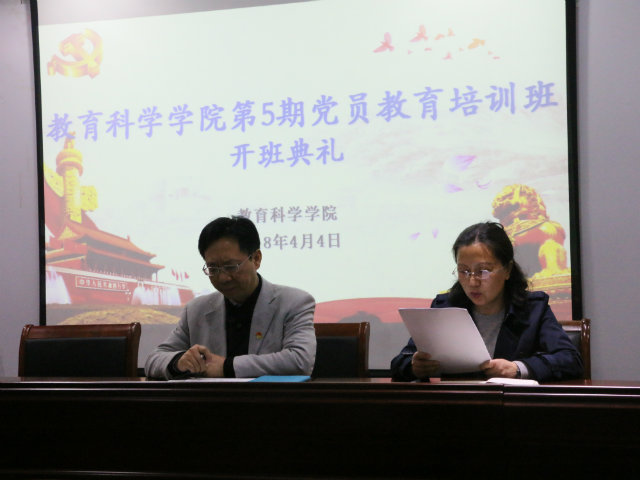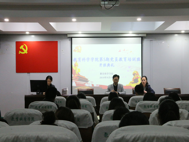 本网讯(教科院 曹玲玲 谭茹轩)为进一步加强我院学生党员的培养教育工作,锤炼党员党性修养,提升学生党员队伍的整体素质,4月4日下午,院第五期党员教育培训班开班典礼暨第一次教学活动成功举行。院党委书记方泓,党委副书记张如华,分党校班主任谭茹轩及学院各专业本科生和研究生共40余名学员参加了典礼。典礼由培训班班主任谭茹轩主持。