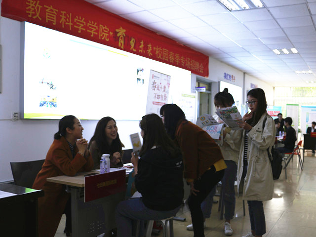 本网讯(教科院 龚伟)育见未来,筑梦起航。进入四月份以来,就业压力逐渐增加,就业难度不断增大,为进一步帮助2018届毕业生,尤其是“慢就业”学生尽快找到工作,找好工作,教科院广开思路,积极寻找就业资源,搭建就业供需平台,于4月13日,在二十余家就业单位的助力下成功举行了教科院“育见未来”春季专场招聘会。