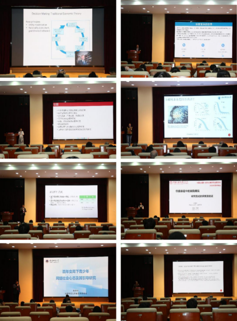 11月11日上午和12日上午,会议围绕“信心与理性:经济心理学的视野”的主题组织了八场特邀报告。奥地利维也纳大学教授Erich Kirchler以“Economic Psychology: Overview and Selected Topics”为题,阐述了经济心理学领域的核心研究主题及发展趋势。华南师范大学教授李红以“对威胁刺激的敏感性:是保护还是伤害?”为题,依据15年以来的有关研究成果,指出Staying alive这一进化决策对女性心理健康的消极影响。中国人民大学教授王湘红以“幸福感的性别差异和女性领导力发展”为题,报告了传统的性别观念对女性幸福感和领导力发展的消极作用,探讨了促进女性领导力发展的行为助推机制。中央财经大学副教授赵娜以“稀缺与慷慨行为:自我建构的视角”为题,阐述了个体的面子意识在稀缺与慷慨行为之间的调节作用。浙江大学研究员戴俊毅以“跨期偏好的动态认知建模”为题,着重介绍了与跨期偏好有关的过程建模研究。中国人民大学副教授李雪婷以“价值表征中的自我偏见——研究范式的探索及验证”为题,介绍了一个新的探索价值表征中自我偏见的行为学研究范式。安徽师范大学教授桑青松以“百年变局下青少年网络社会心态与心理健康研究”为题,从个体、家庭、社会文化的多重视角探讨了网络社会心态与青少年心理健康。南开大学教授陈浩以“具身支配性:紧文化下自身与领导者体形偏好”为题,阐述了松-紧文化如何影响追随者对领导者的偏好。