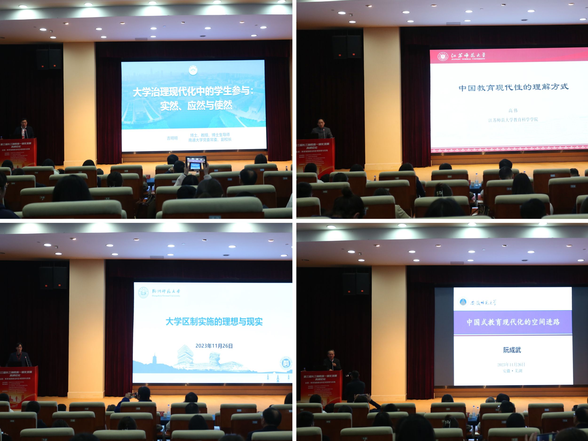 随后,大会组织了8场主旨报告、24场分论坛报告,围绕“教育强国建设的区域探索与实践”主题,进行了广泛而深入的研讨。主旨报告由杭州师范大学严从根教授、华东师范大学刘世清分别主持。华东师范大学丁钢教授、广西师范大学王枬教授、南京师范大学缪建东教授、华东师范大学范国睿教授、南通大学吉明明教授、江苏师范大学高伟教授、杭州师范大学严从根教授、安徽师范大学阮成武教授等8位专家学者做了大会主旨报告。