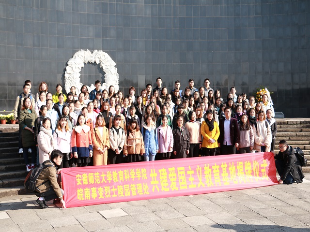 本网讯(教科院 朱珠)为重温红色历史,缅怀革命先烈, 11月26日入党积极分子培训班及入党启蒙班的全体成员在院党委秘书马兴和院团委书记莫大贡的带领下赴泾县开展“缅怀革命英烈,激发爱国热情”的主题实践活动。